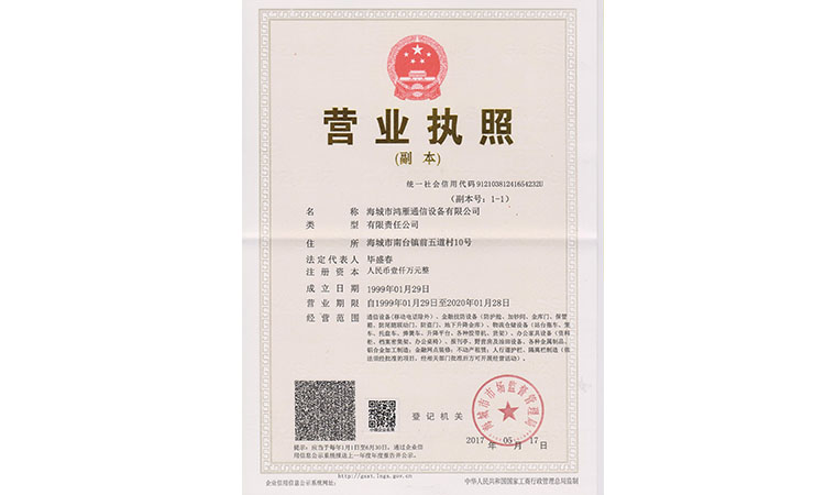 海城市鴻雁通信設備有限公司成立于1985年,位于海城市鞍海公路東側(cè),交通便利。注冊資金1000萬,占地面積17800平方米,職工120人,年產(chǎn)值600多萬。法人代表畢盛春,曾多次獲得“中國誠信企業(yè)家”稱號。